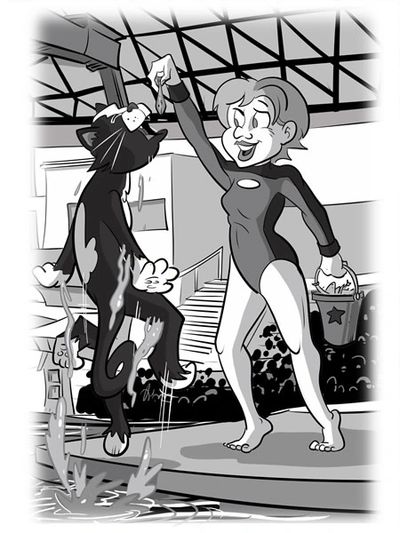 Chow time at Sea World for Whale Boy, aka Orca, both my terms. The object of my derision, an immense black-and-white cat, sprawls nearby in our living room like an odious odalisque. Feline aficionados refer to his markings as “tuxedo,” for the way his black coat nearly meets in the middle of his white belly. But it’s doubtful The Black Tux would have his size.
